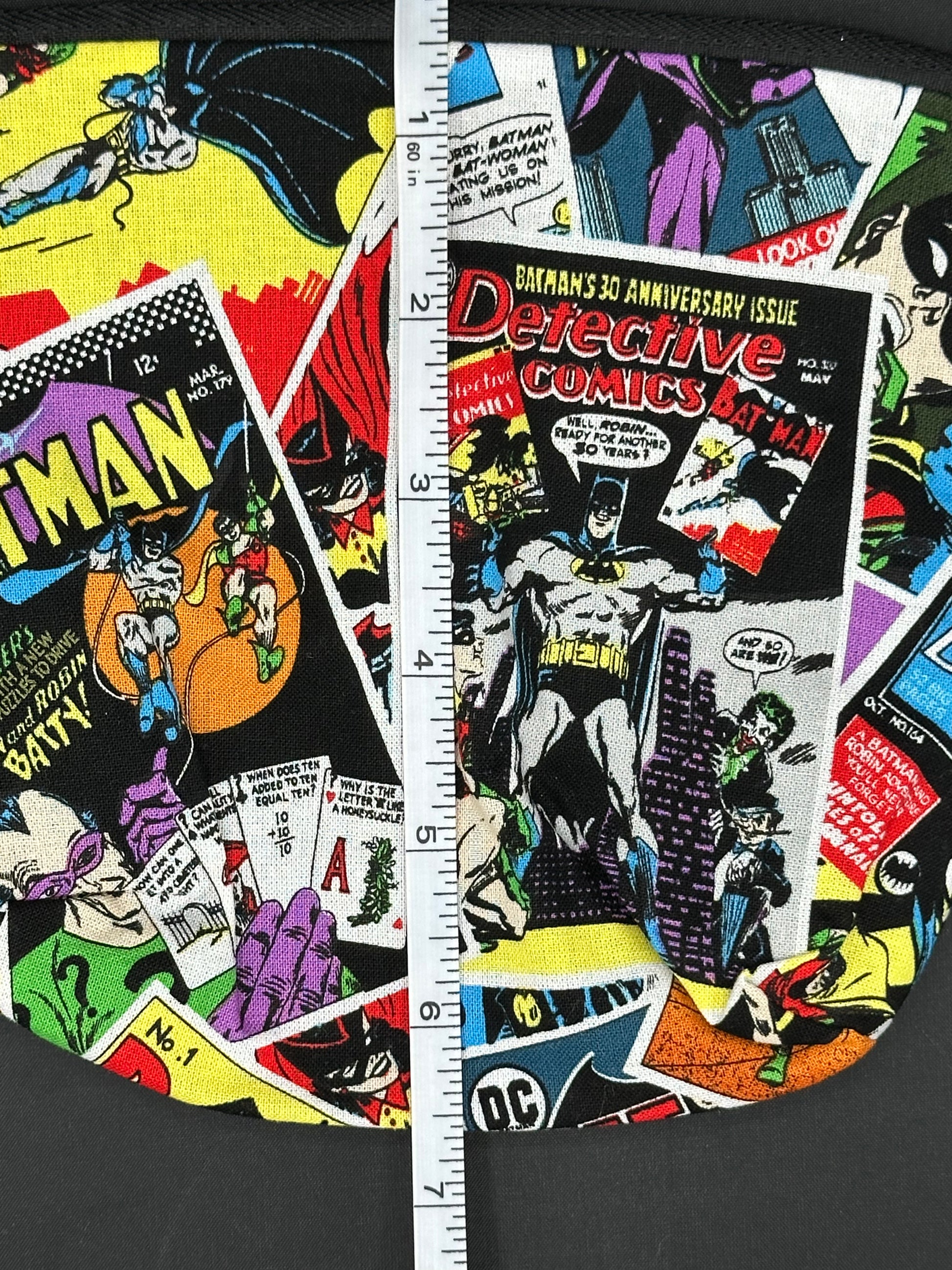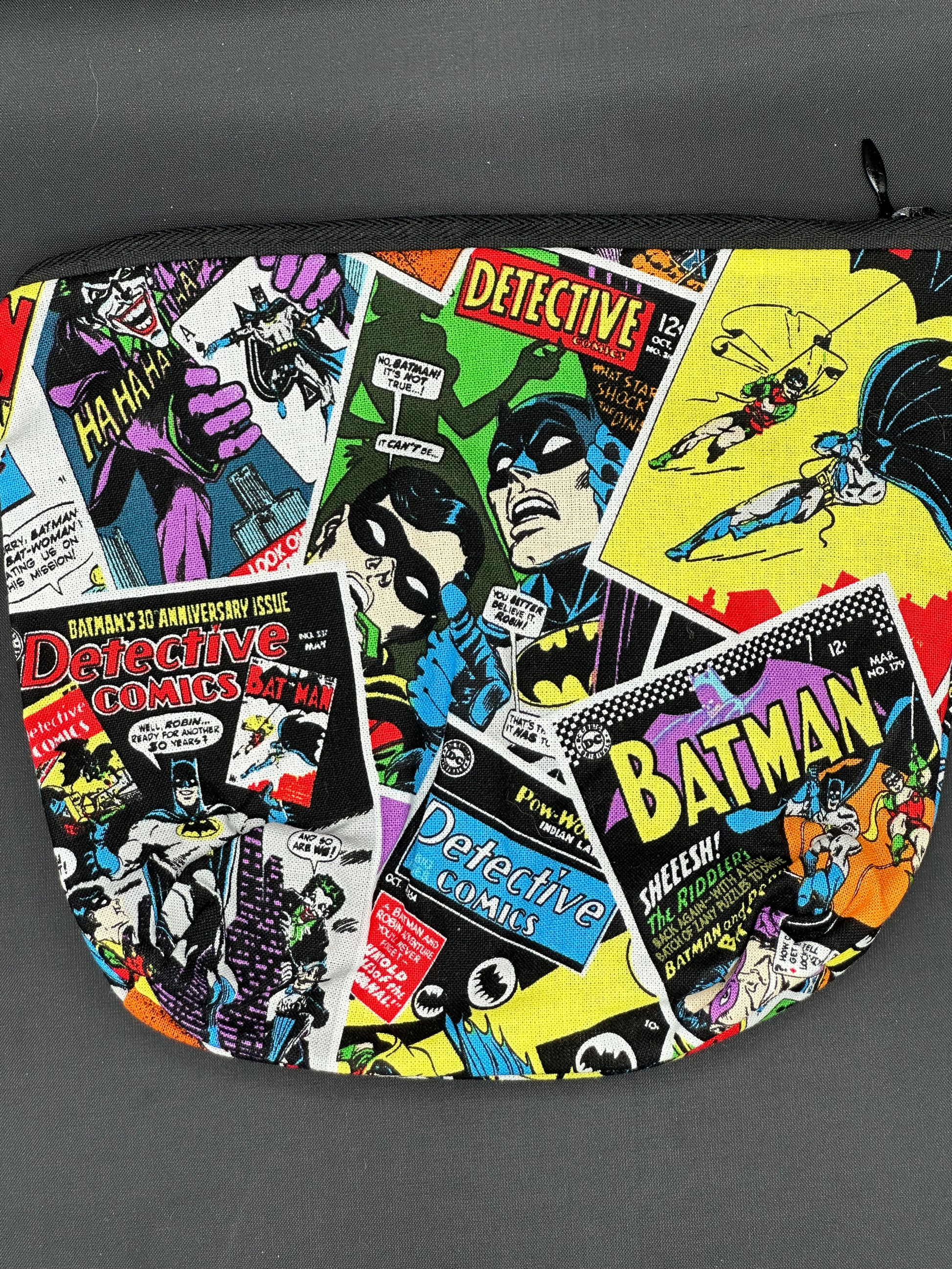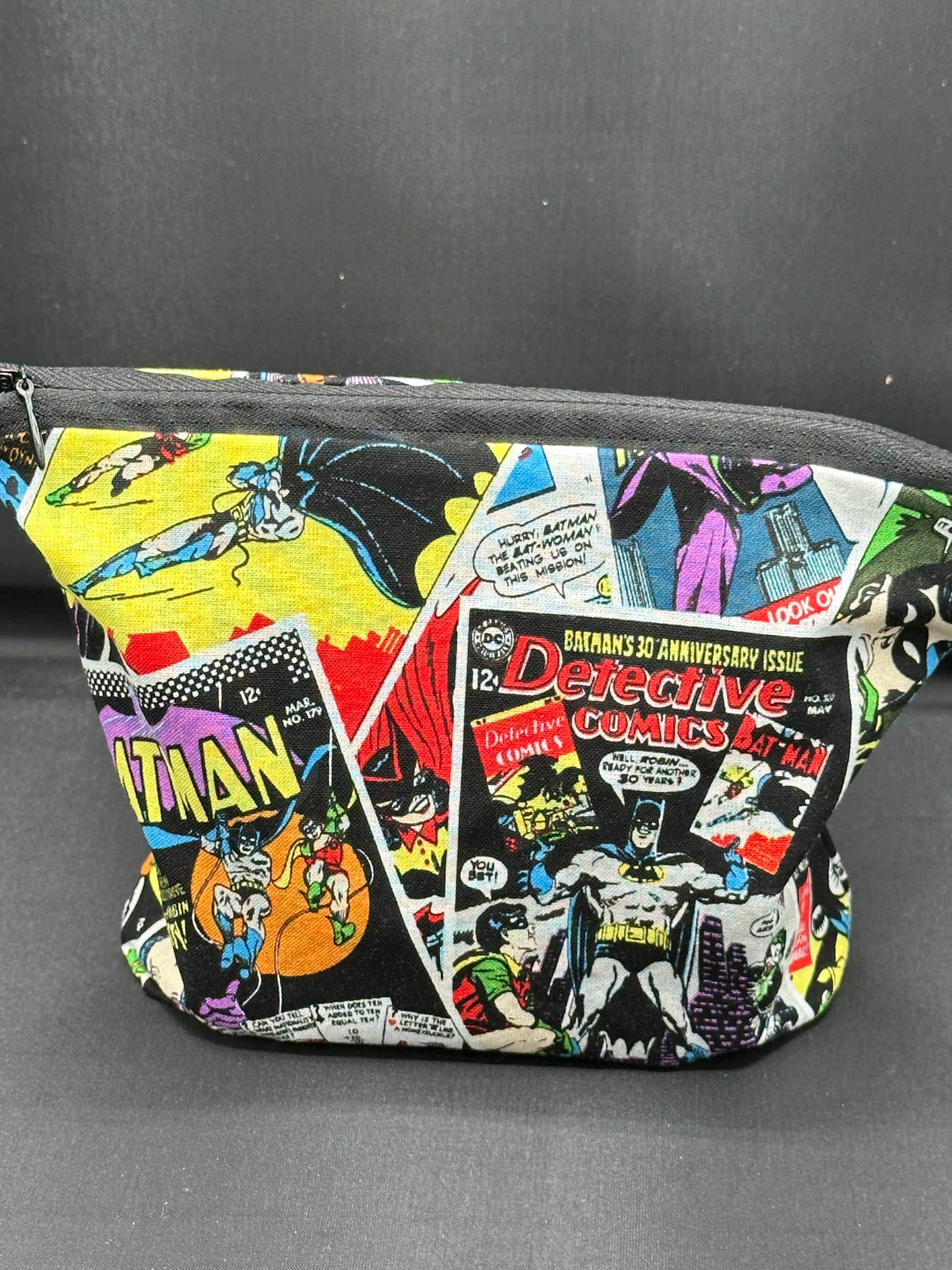 The finished product is about 7 inches by 7 inches. The bottom corners have been made to form a box look to give it a bigger bottom. These can be used to carry various items (ex: pencils, pens, cosmetics, toys)