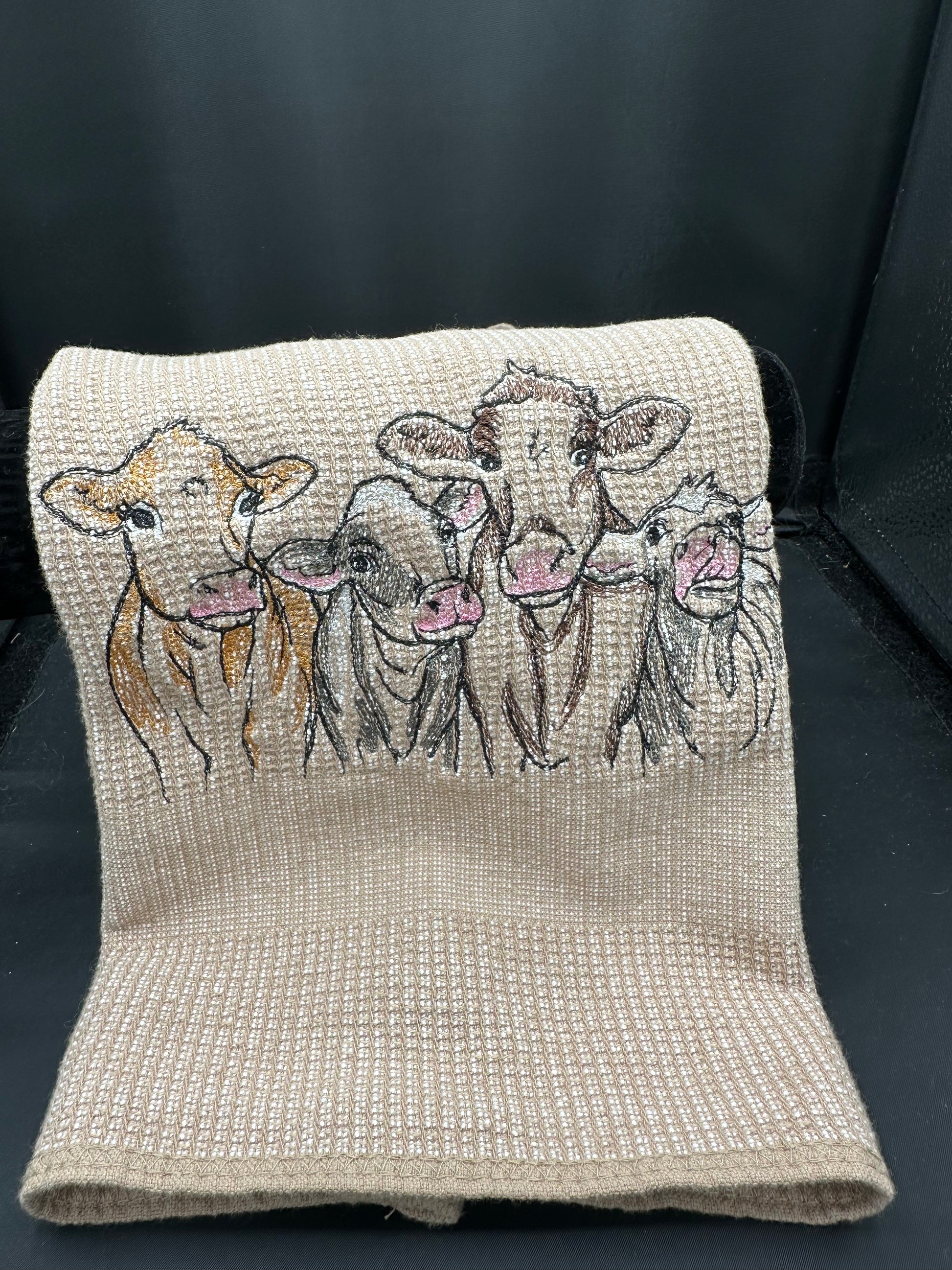 Machine embroidered towel.