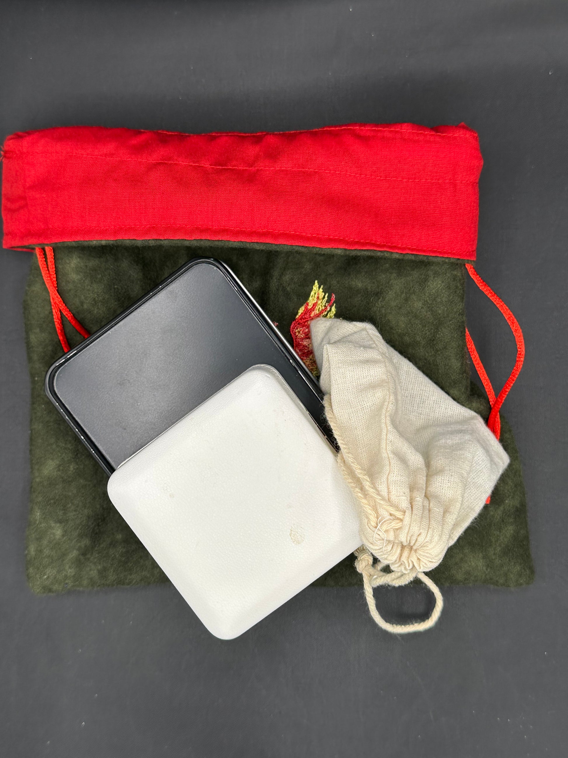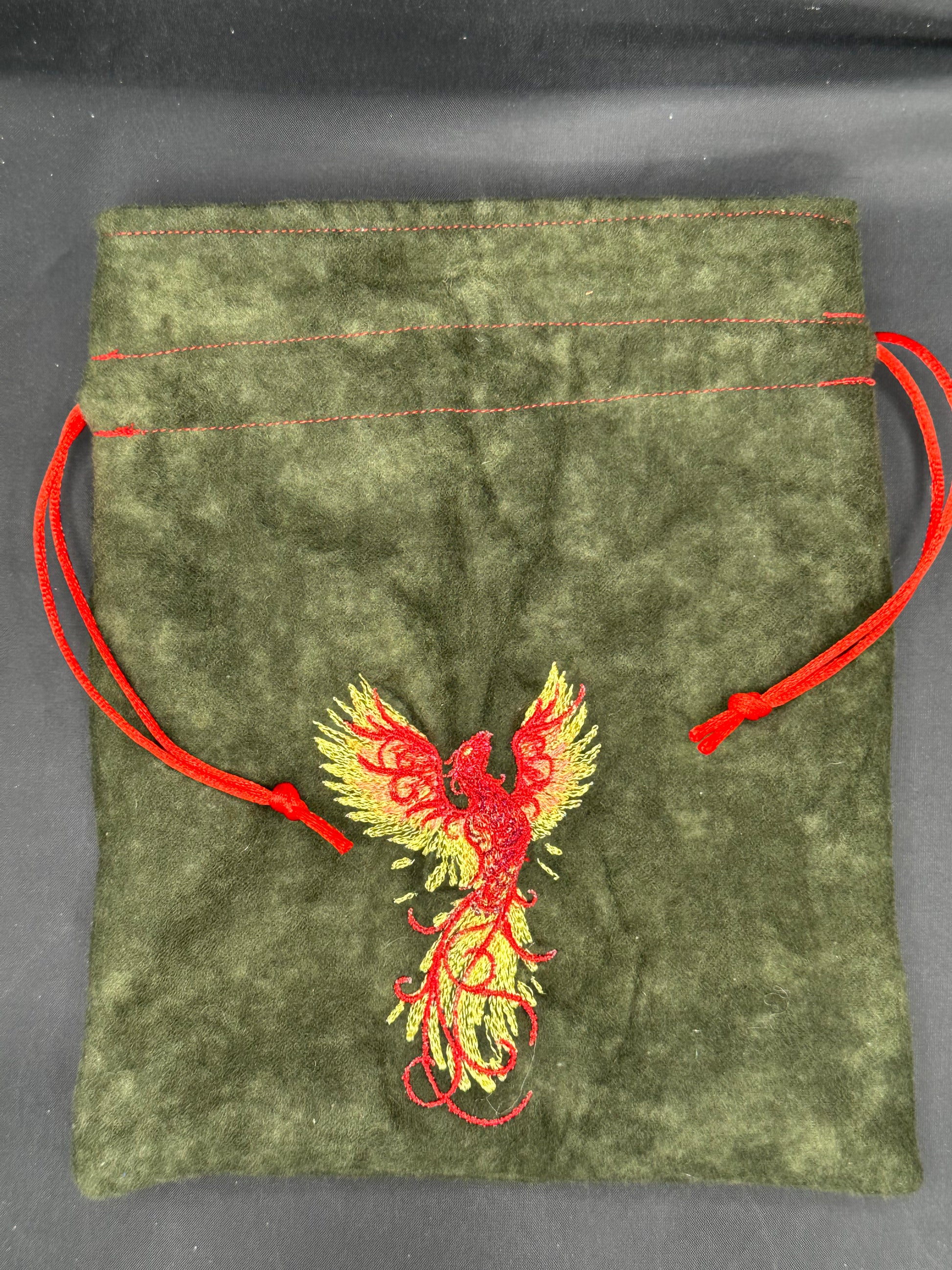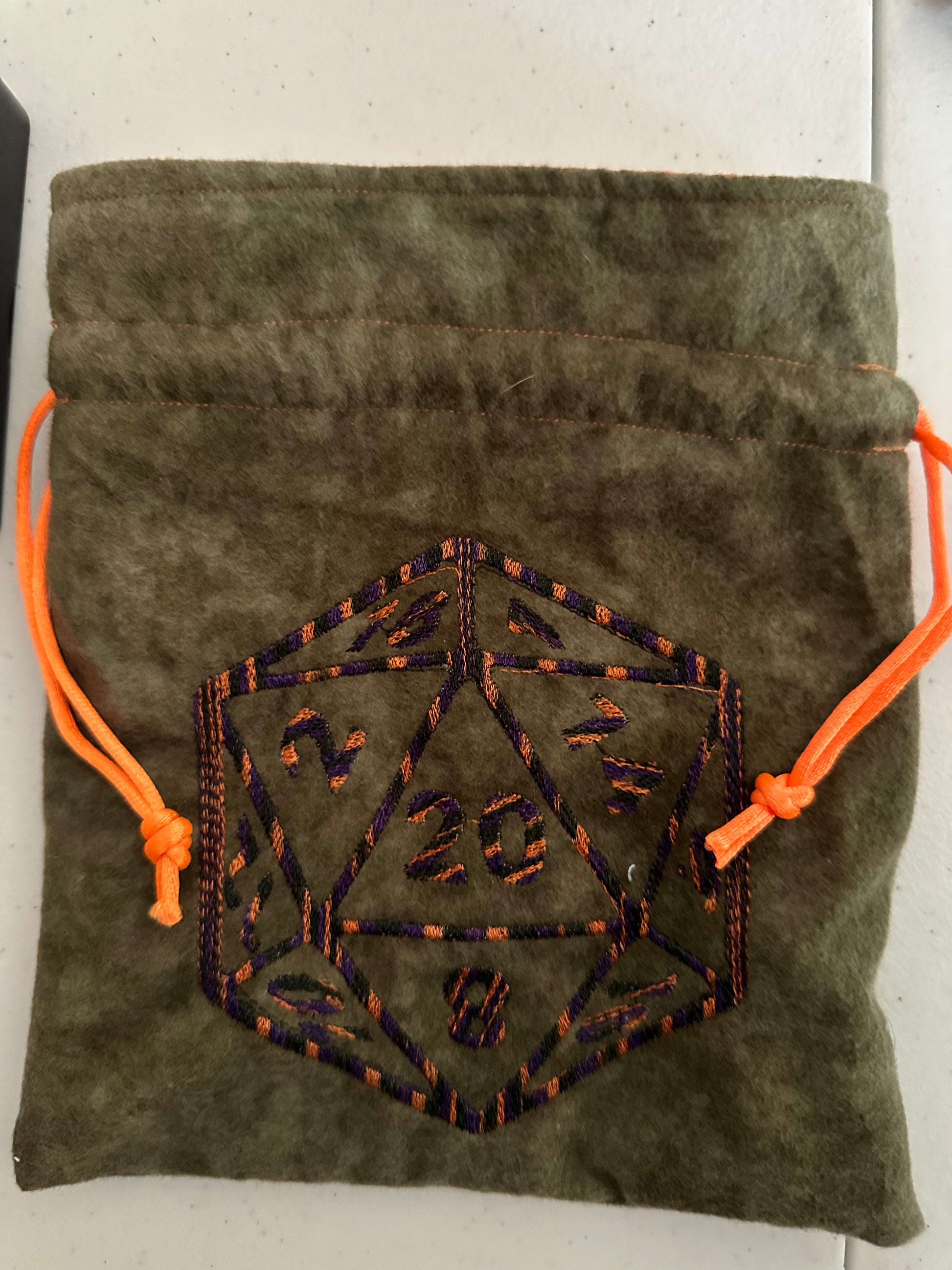 This is a draw string bag that is about 7 1/2 inches by 8 1/2 inches. These can be used to carry various items (ex: dice, pencils, pens, cosmetics, toys).