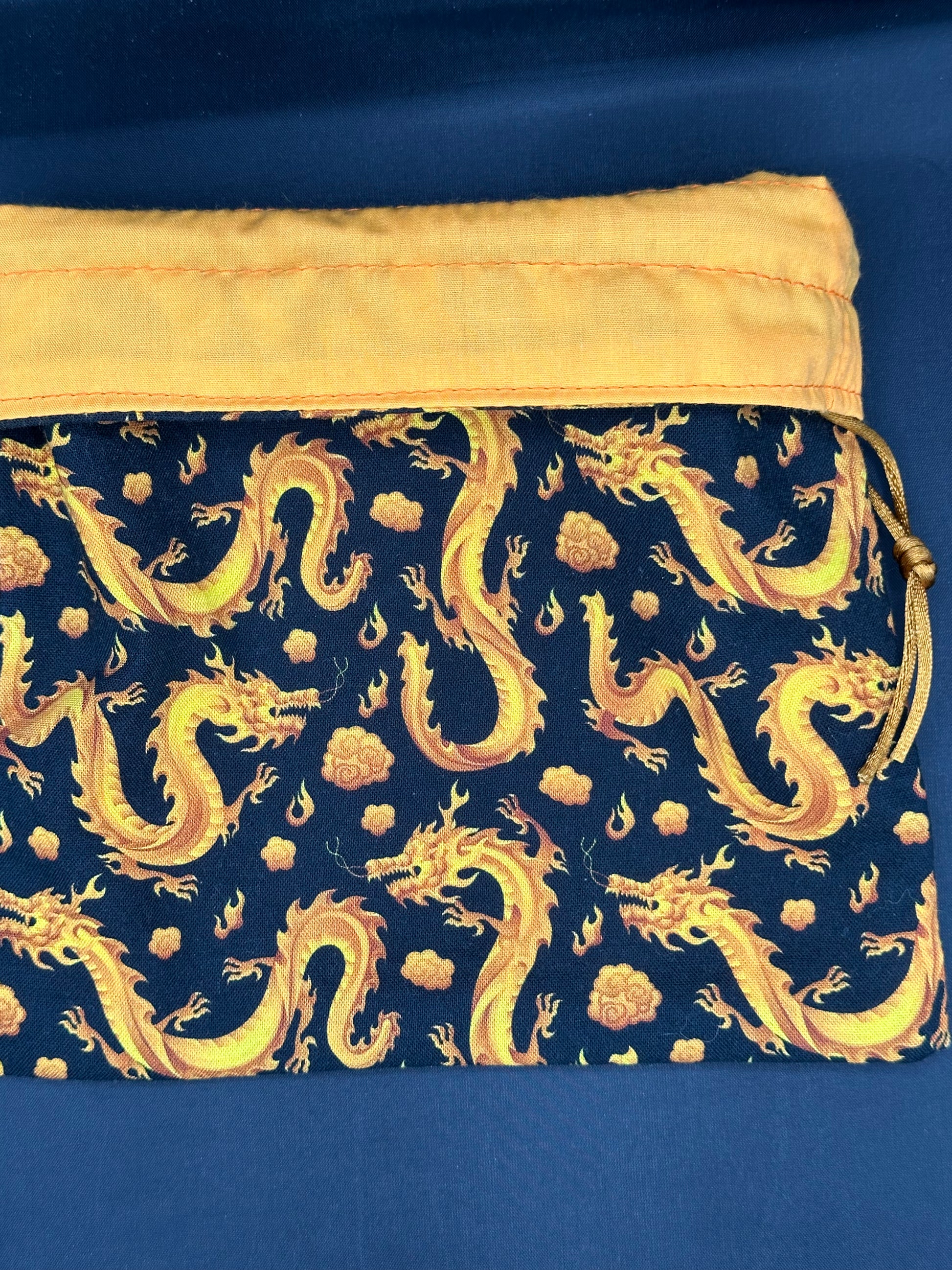 This is a draw string bag that is about 8 inches by 9 inches. These can be used to carry various items (ex: dice, pencils, pens, cosmetics, toys).