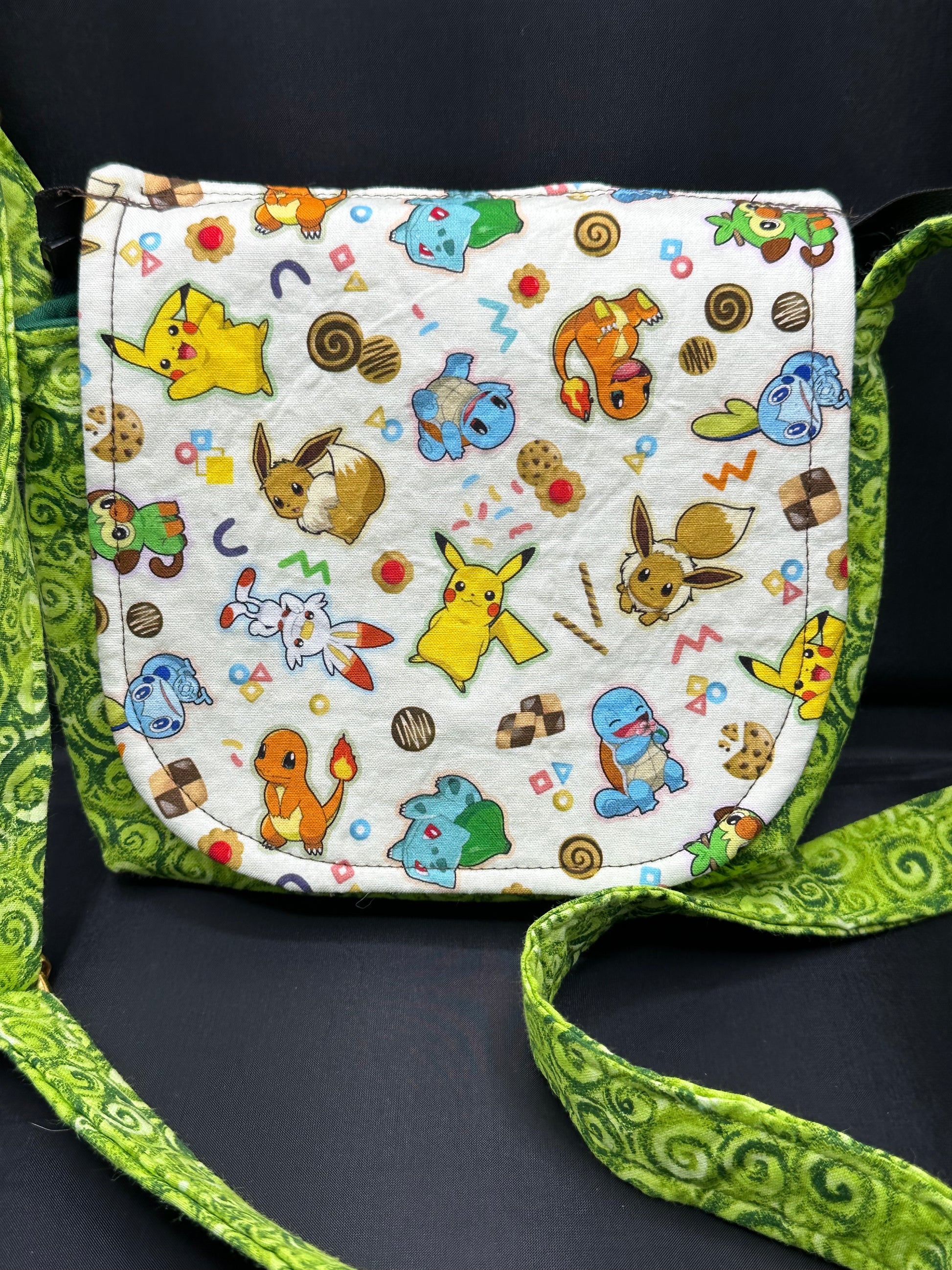 Purse finished size is approximately 8 inches wide by 6 inches. All purses have a main pocket and 2 interior pockets with an outside pocket that has the magnetic snap. All purses have zippers to allow the flap to detach and be replaced with another flap while not changing the main body of the purse.