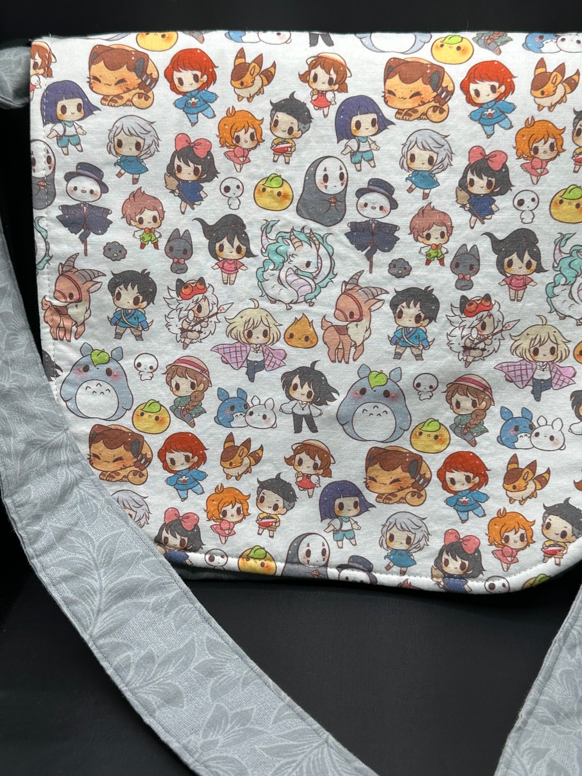 Bags finished size are approximately 13 inches wide by 10 inches. All bags have a main pocket and 4 interior pockets with an outside pocket that has the magnetic snap. All bags have zippers to allow the flap to detach and be replaced with another flap while not changing the main body of the purse.