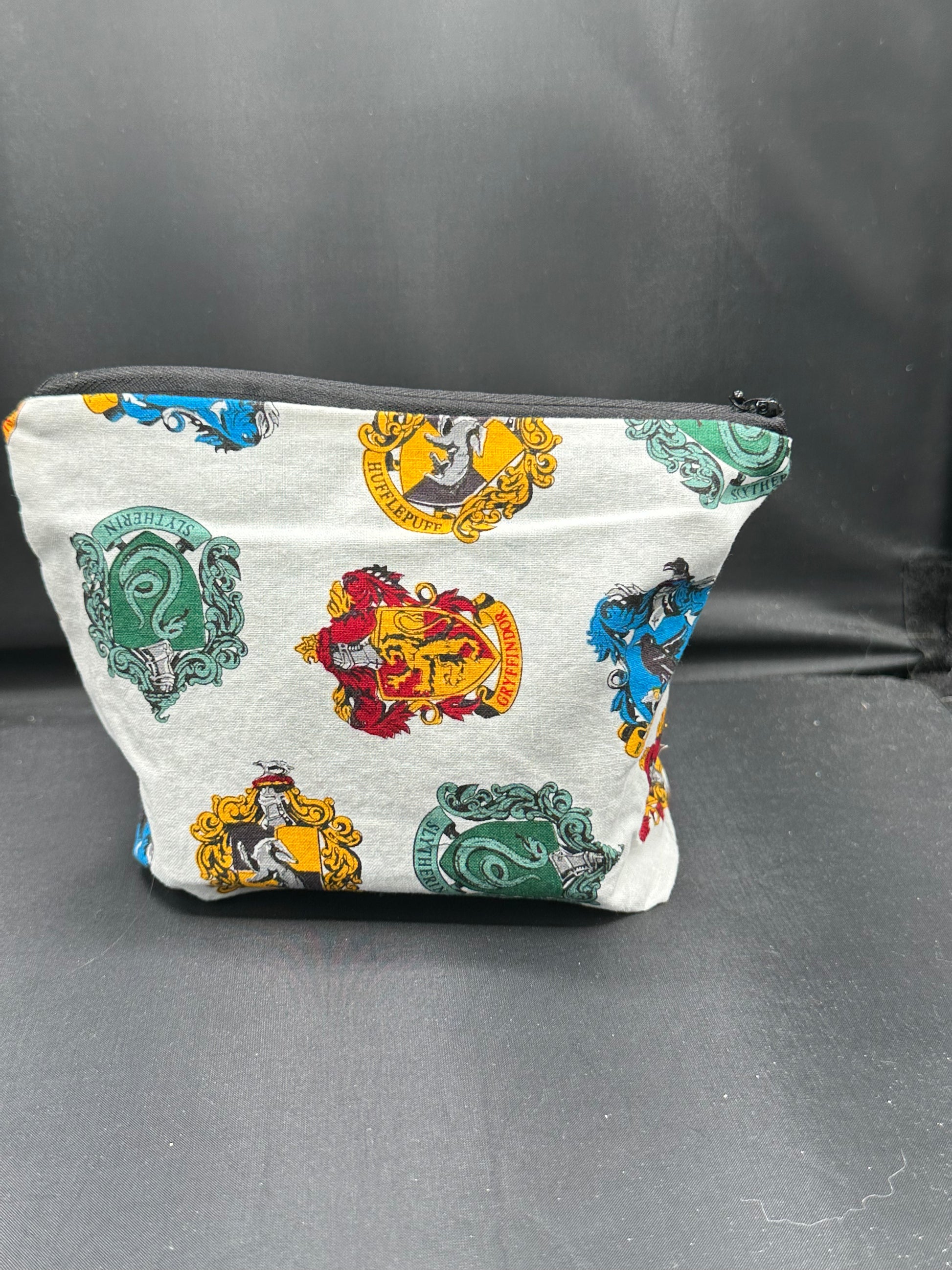 The finished product is about 7 inches by 7 inches. The bottom corners have been made to form a box look to give it a bigger bottom. These can be used to carry various items (ex: pencils, pens, cosmetics, toys)