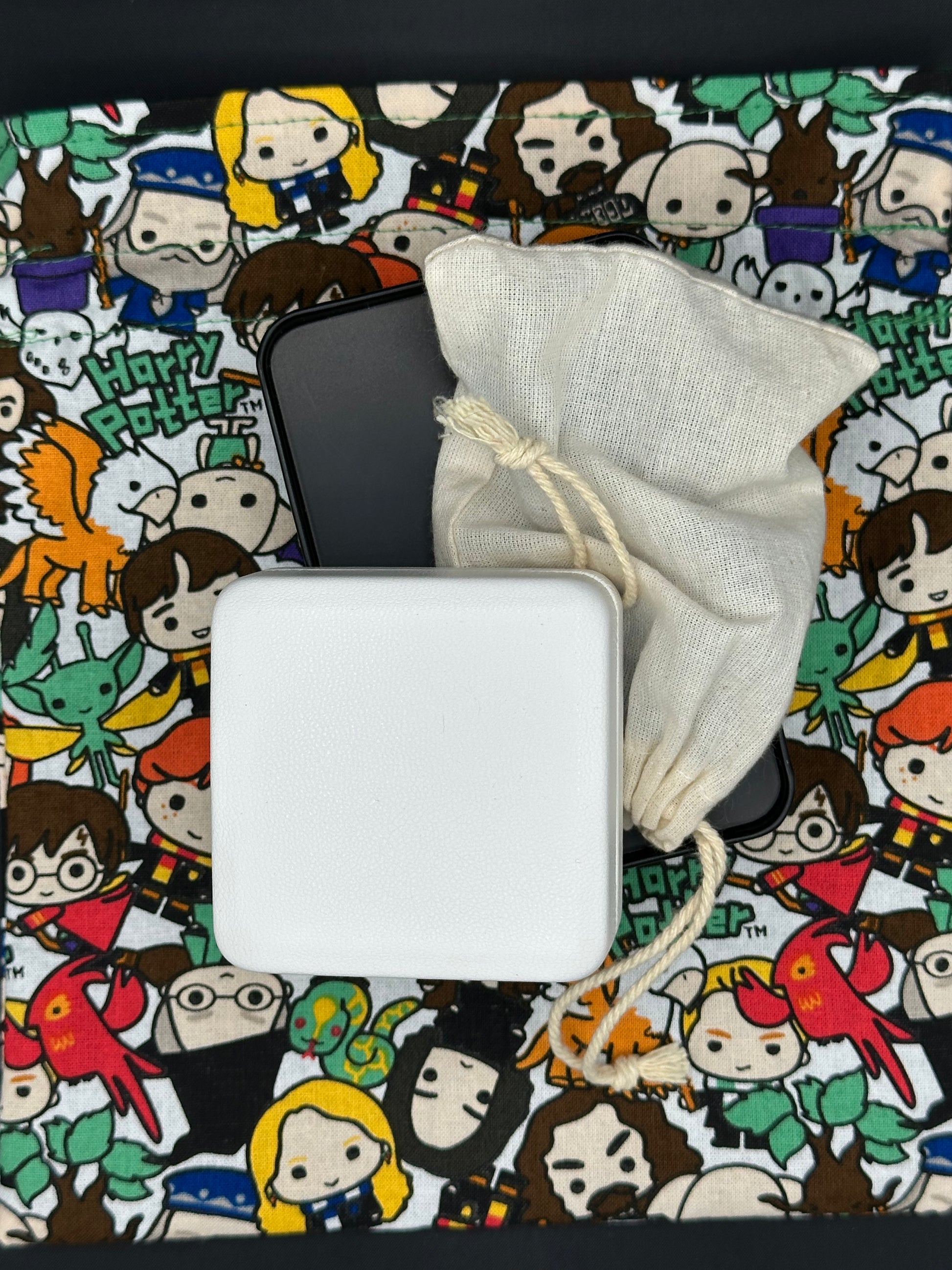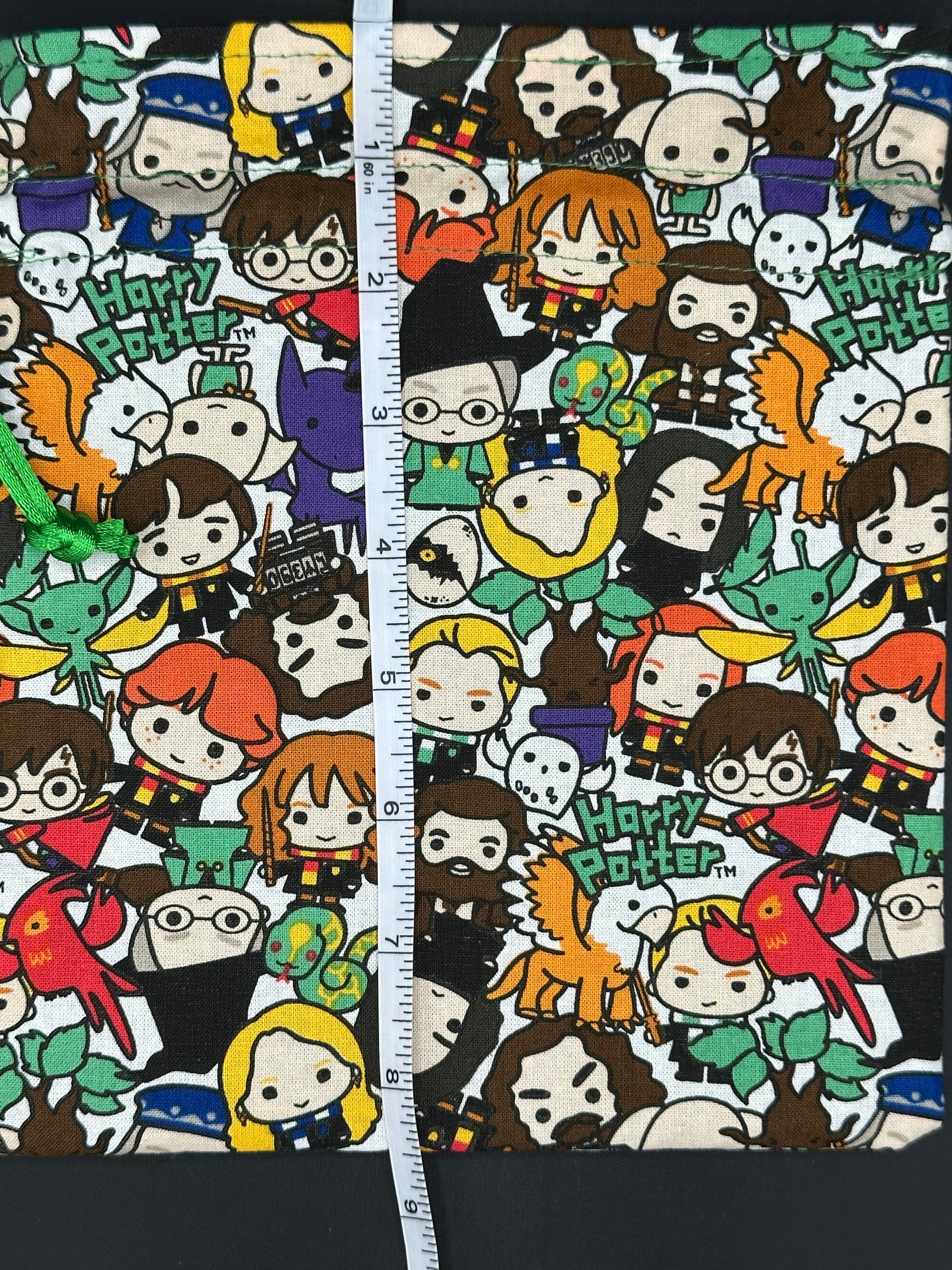 This is a draw string bag that is about 7 1/2 inches by 8 1/2 inches. These can be used to carry various items (ex: dice, pencils, pens, cosmetics, toys).
