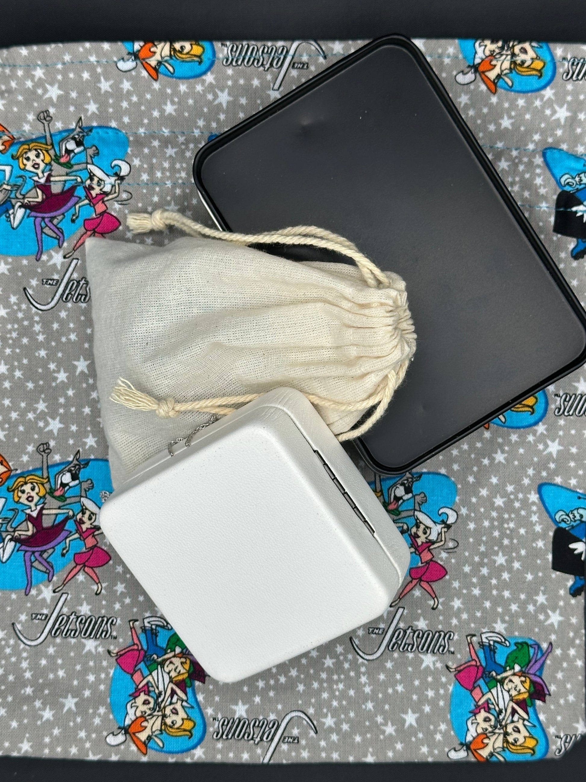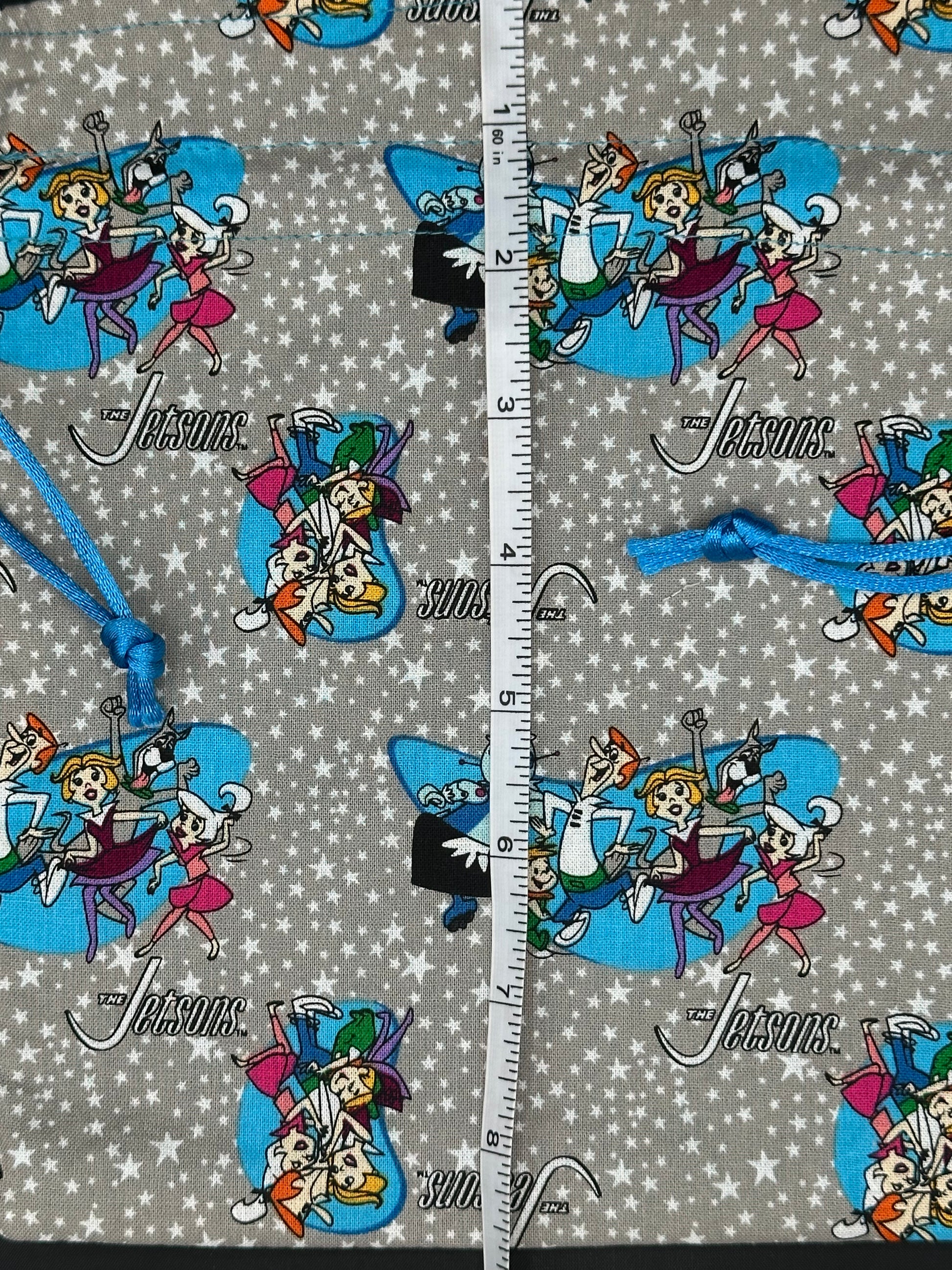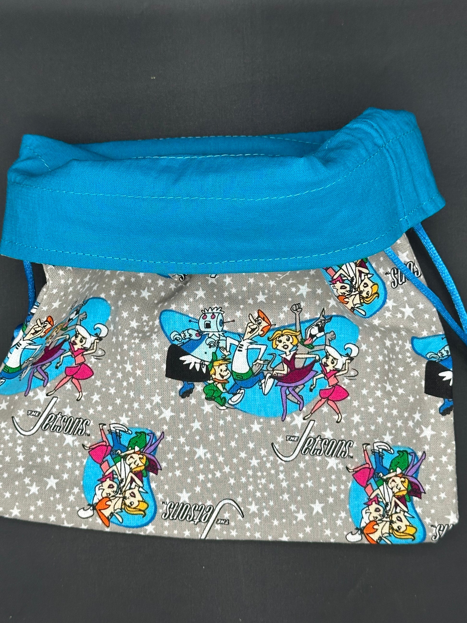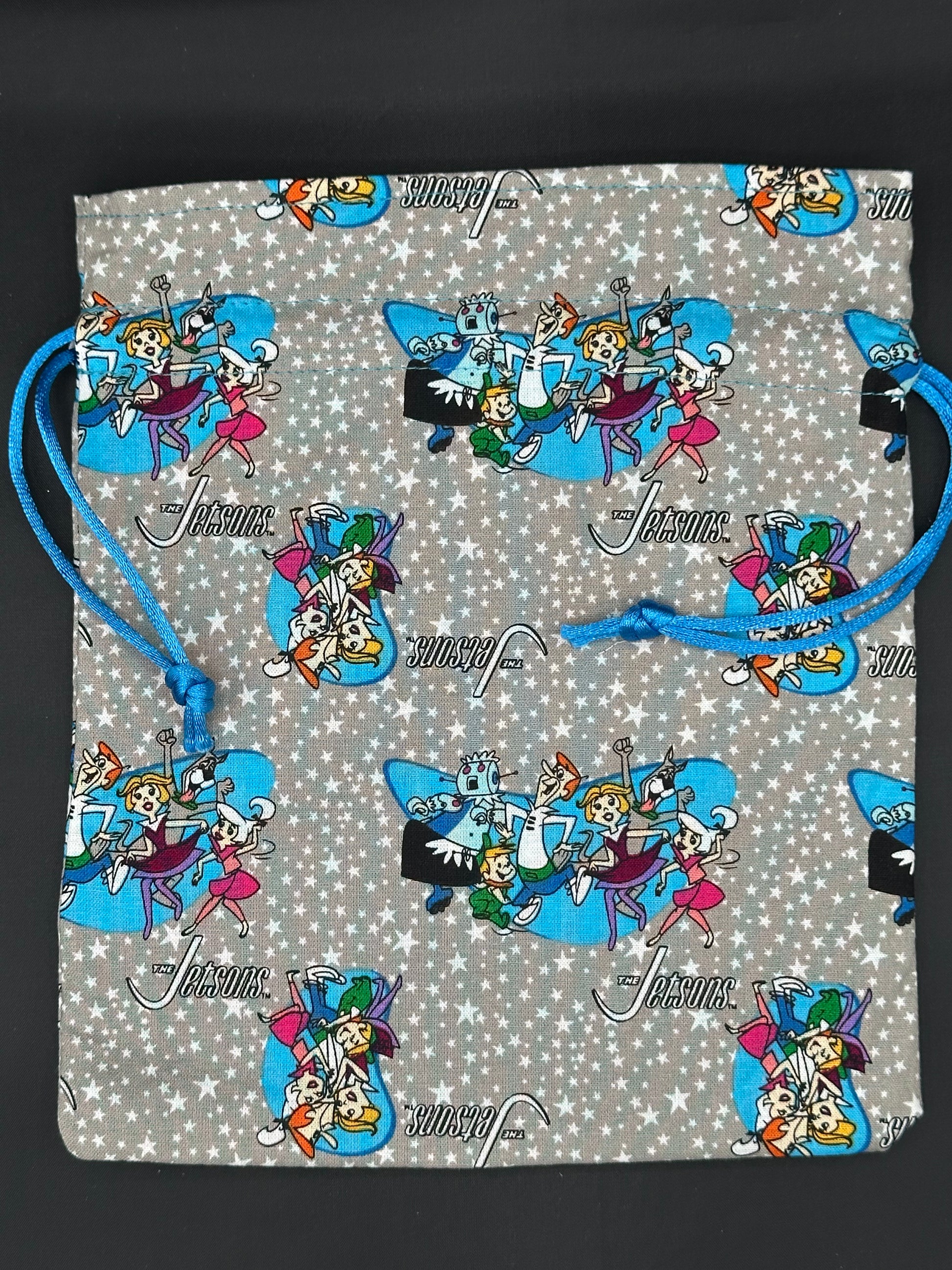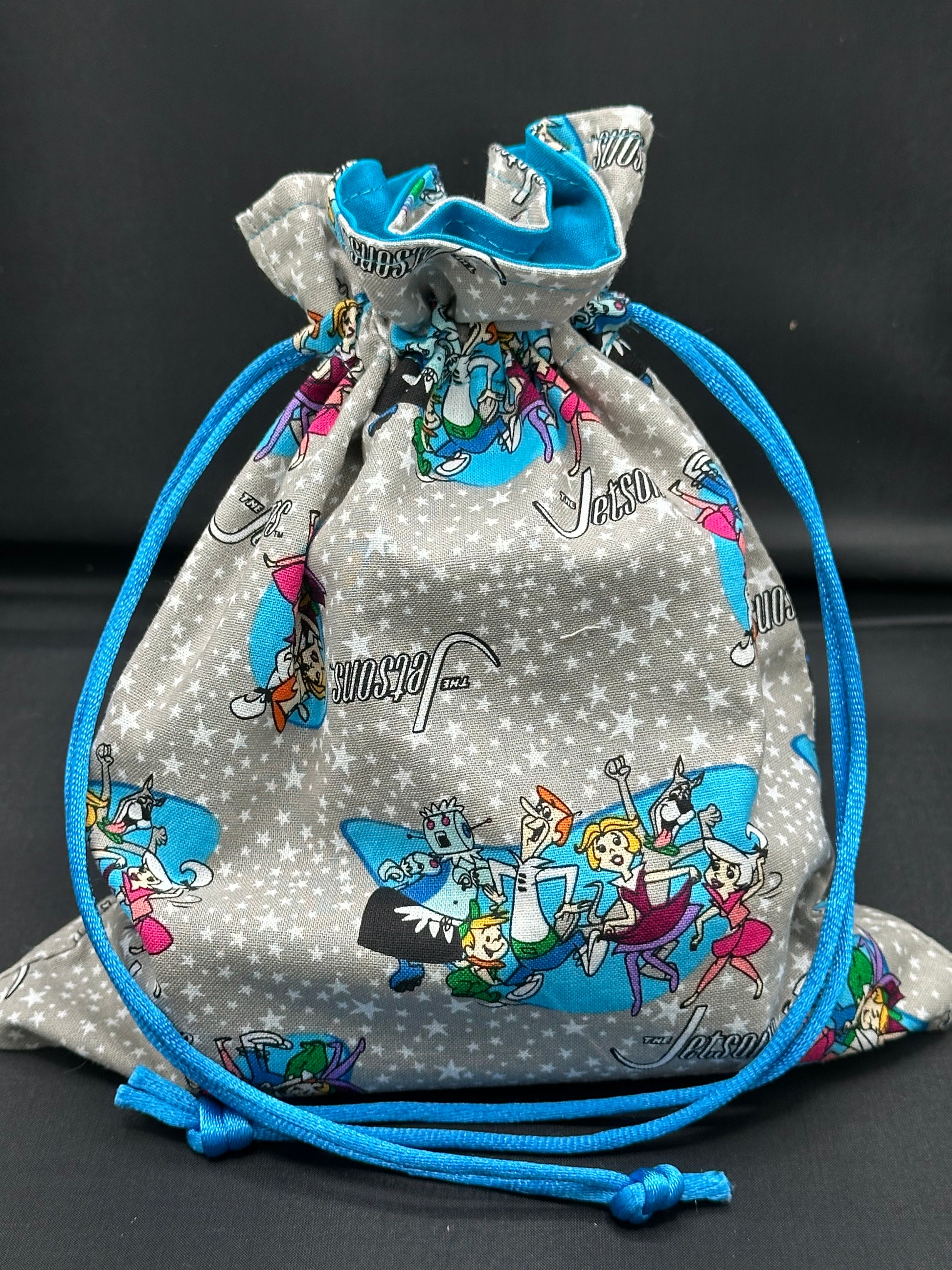 This is a draw string bag that is about 7 1/2 inches by 8 1/2 inches. These can be used to carry various items (ex: dice, pencils, pens, cosmetics, toys)