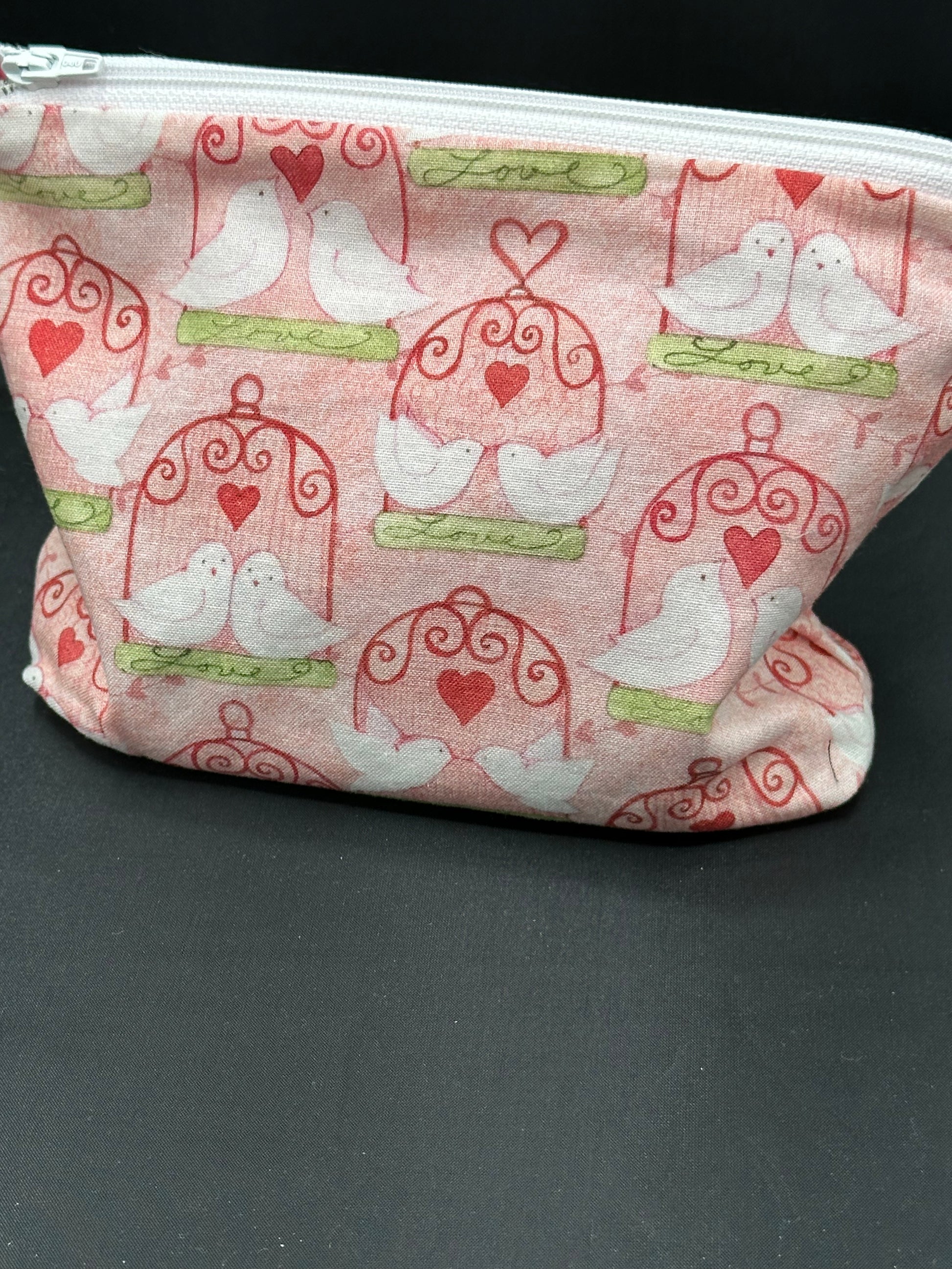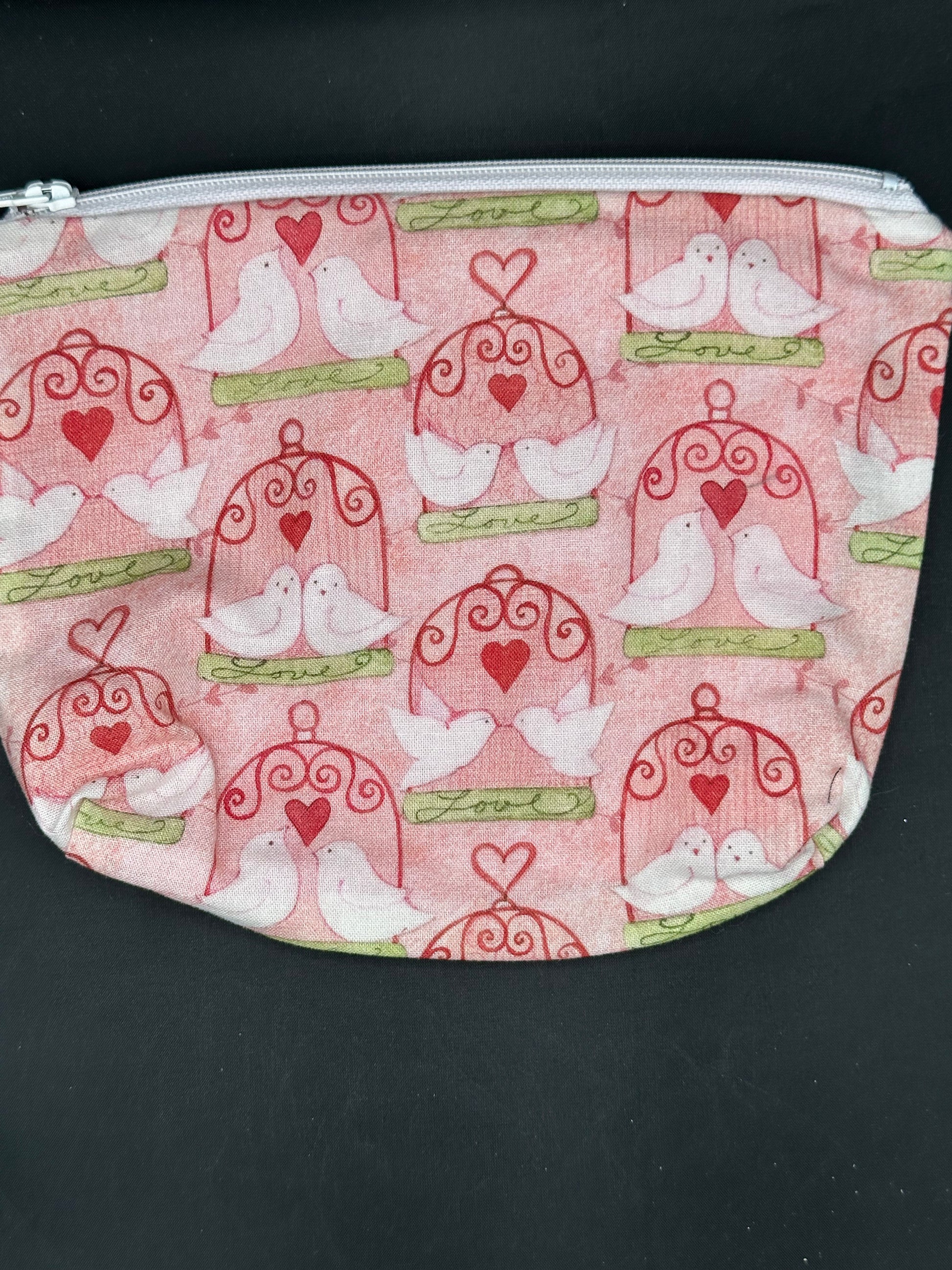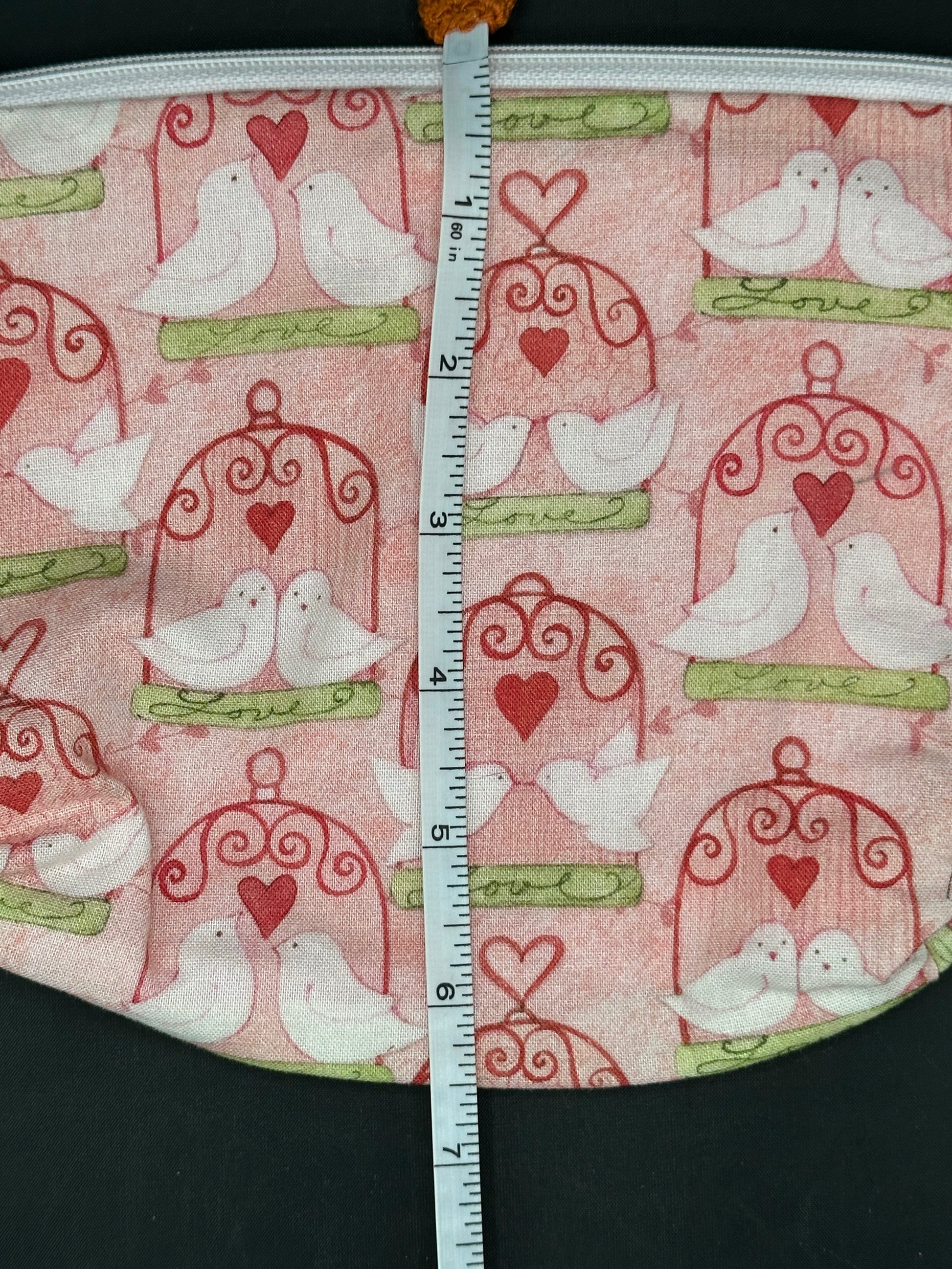 The finished product is about 7 inches by 7 inches. The bottom corners have been made to form a box look to give it a bigger bottom. These can be used to carry various items (ex: pencils, pens, cosmetics, toys)