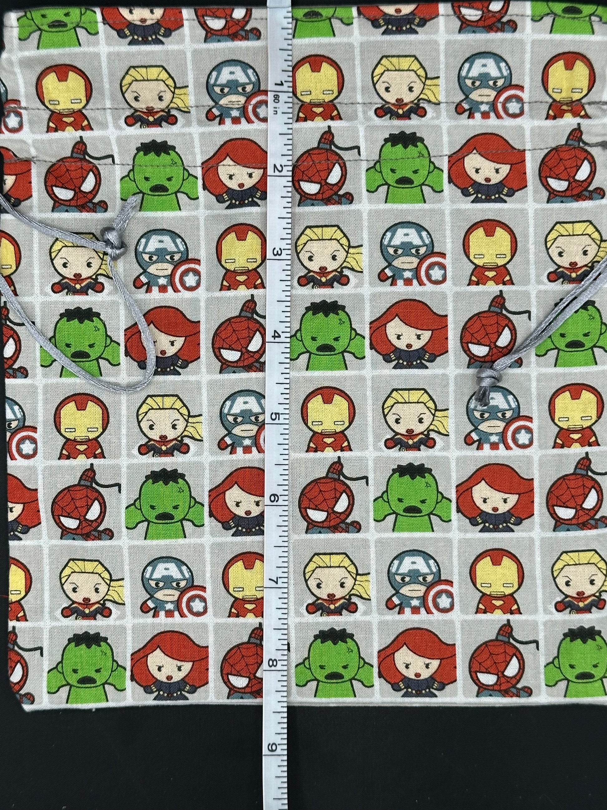 This is a draw string bag that is about 7 1/2 inches by 8 1/2 inches. These can be used to carry various items (ex: dice, pencils, pens, cosmetics, toys)
