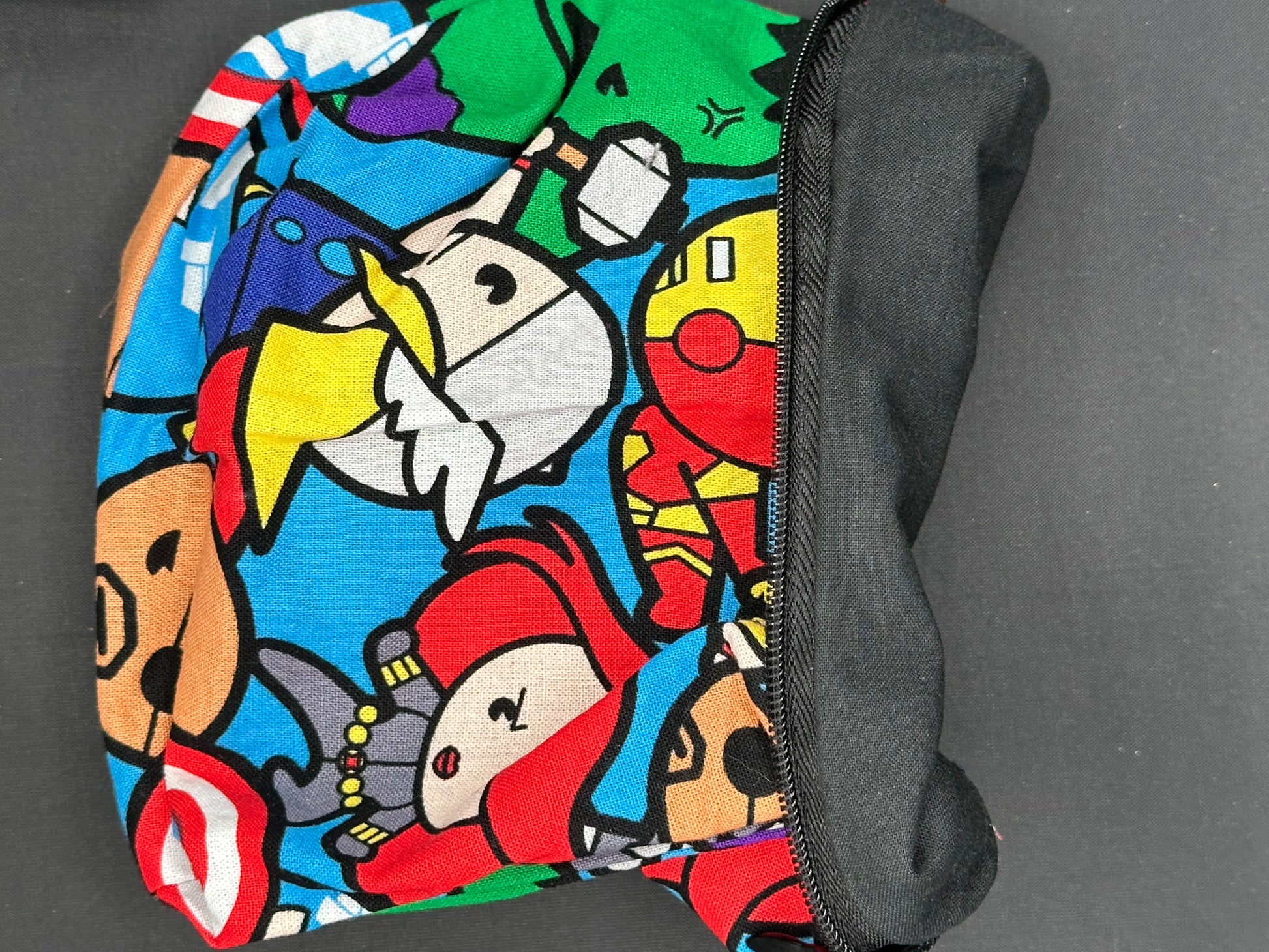 The finished product is about 7 inches by 7 inches. The bottom corners have been made to form a box look to give it a bigger bottom. These can be used to carry various items (ex: pencils, pens, cosmetics, toys)