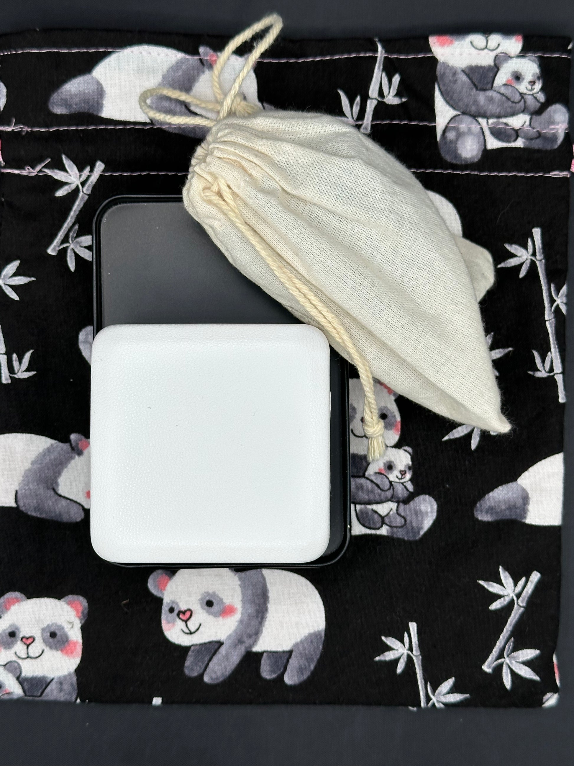 This is a draw string bag that is about 7 1/2 inches by 8 1/2 inches. These can be used to carry various items (ex: dice, pencils, pens, cosmetics, toys)