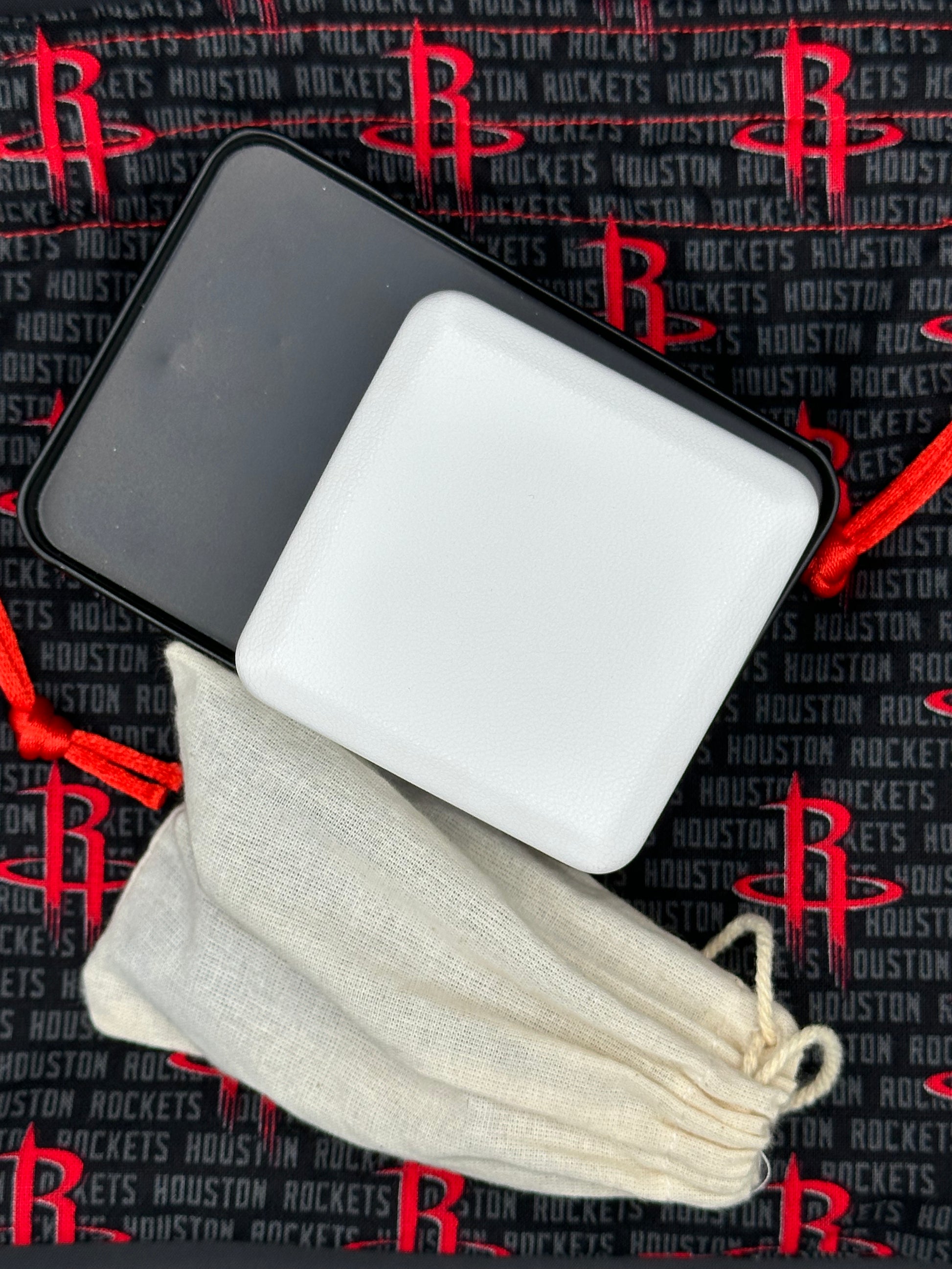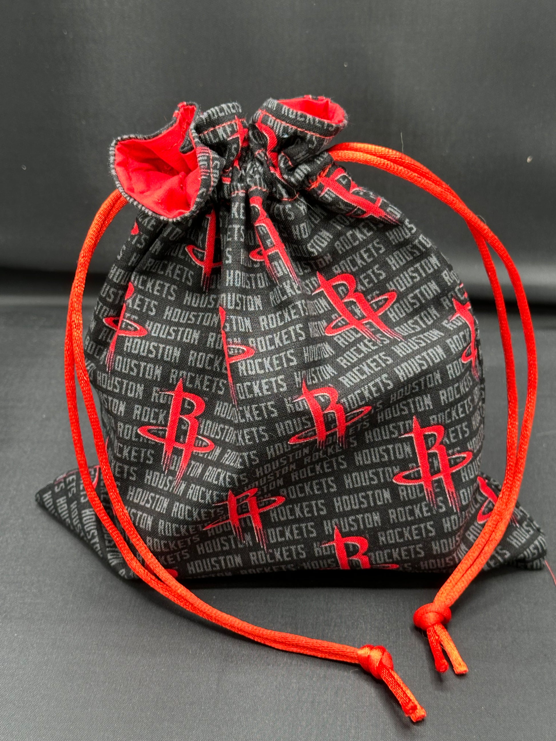 This is a draw string bag that is about 7 1/2 inches by 8 1/2 inches. These can be used to carry various items (ex: dice, pencils, pens, cosmetics, toys)