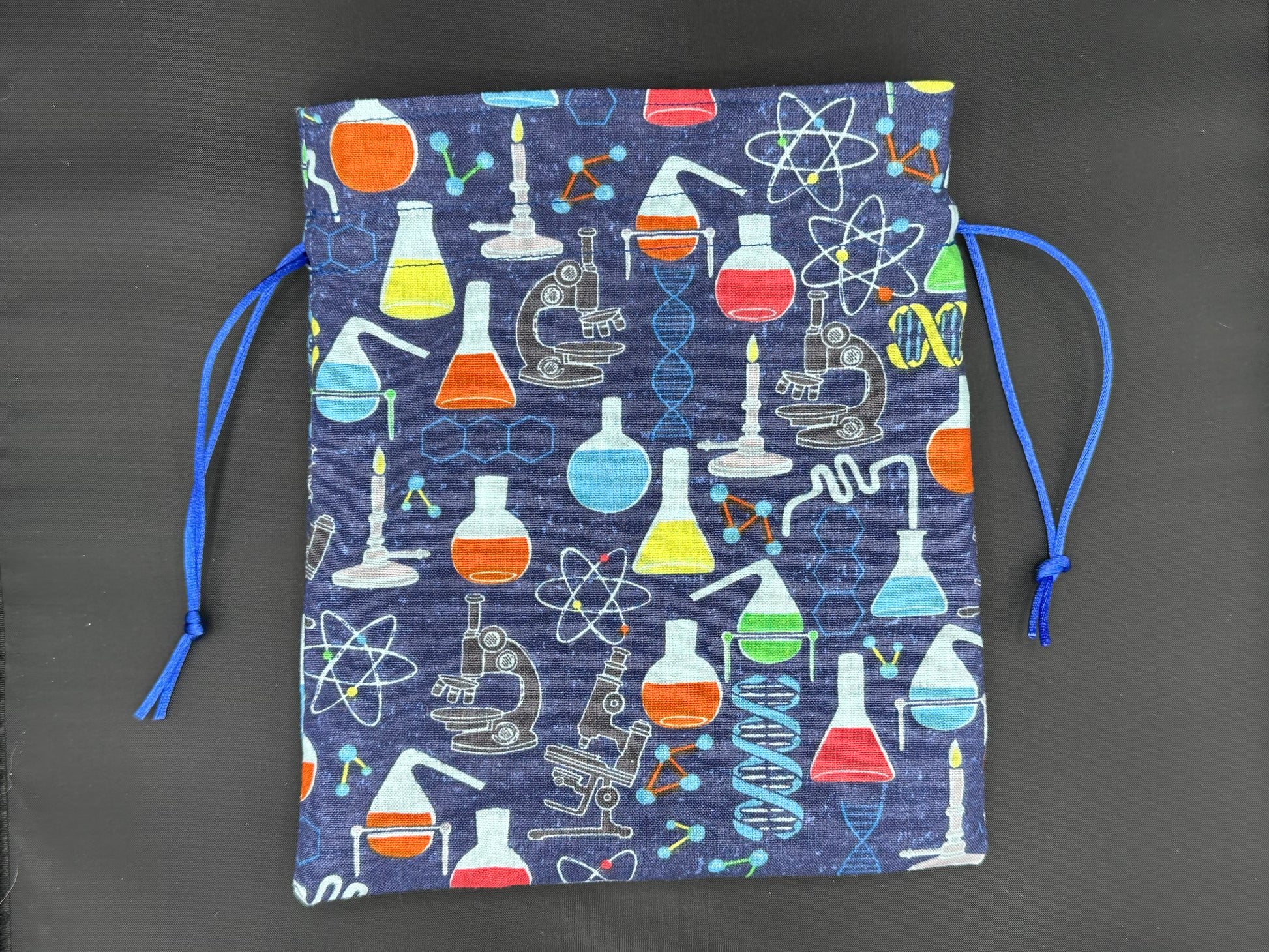This is a draw string bag that is about 8 inches by 9 inches. These can be used to carry various items (ex: dice, pencils, pens, cosmetics, toys).