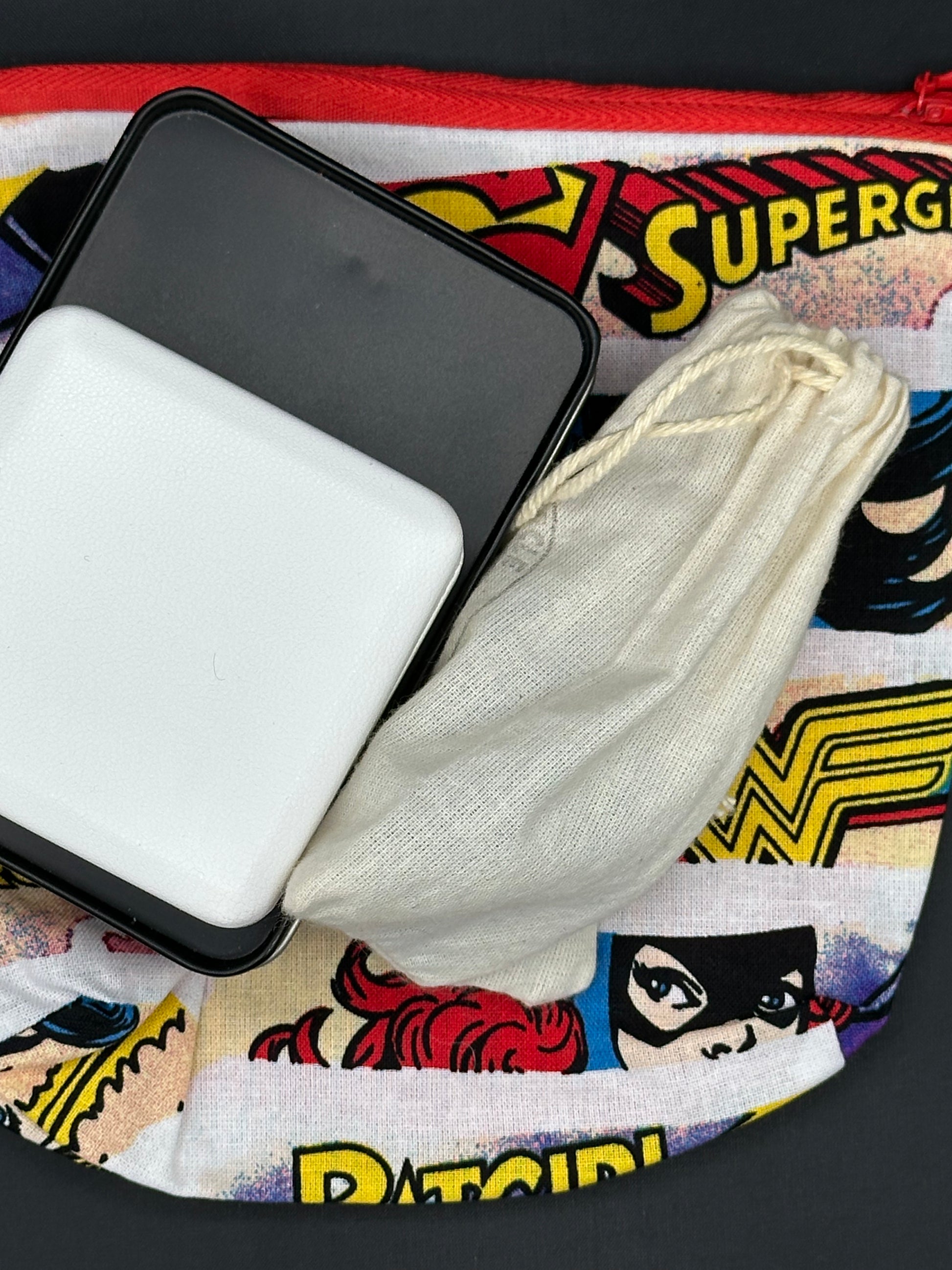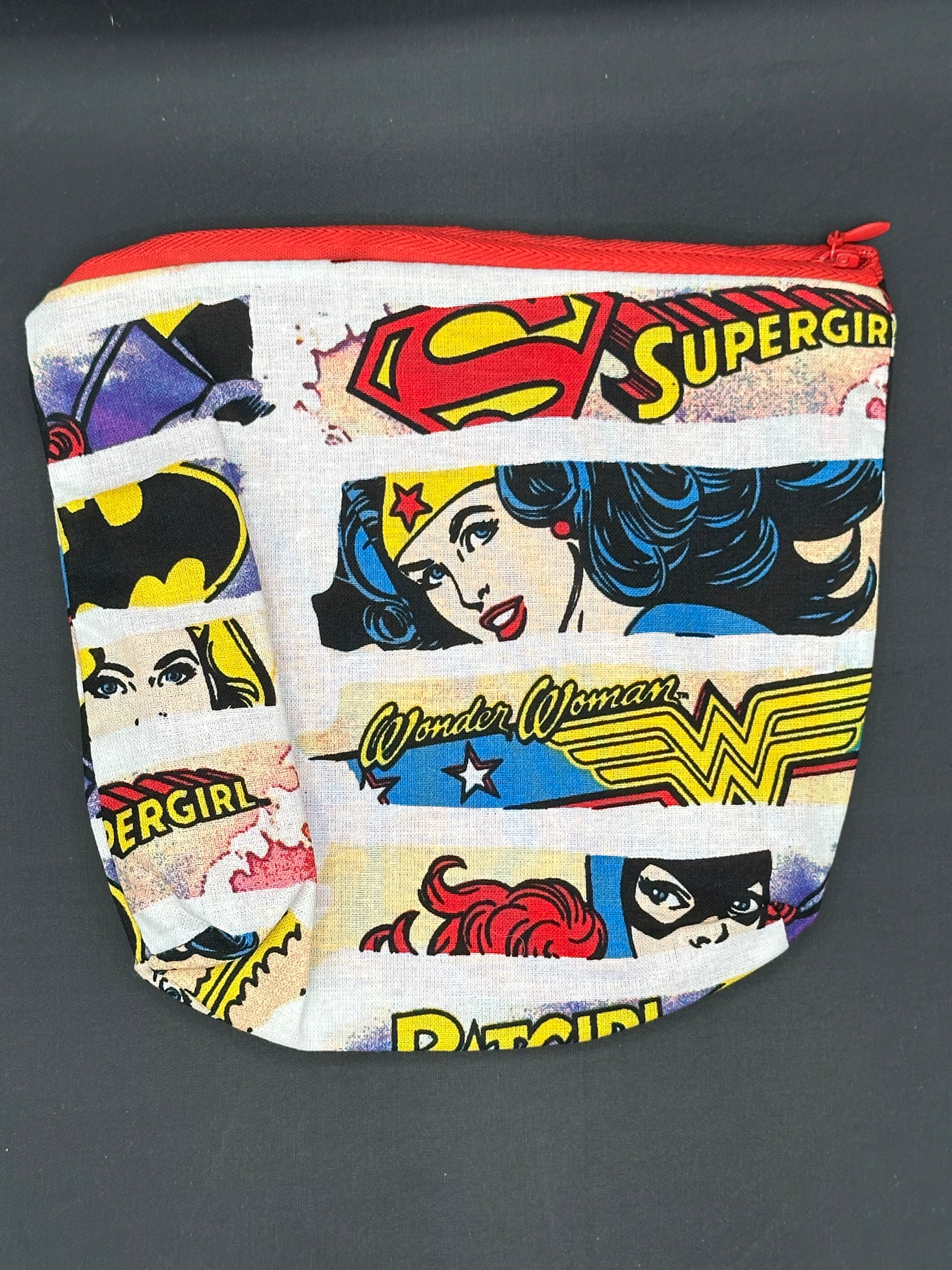 The finished product is about 7 inches by 7 inches. The bottom corners have been made to form a box look to give it a bigger bottom. These can be used to carry various items (ex: pencils, pens, cosmetics, toys)