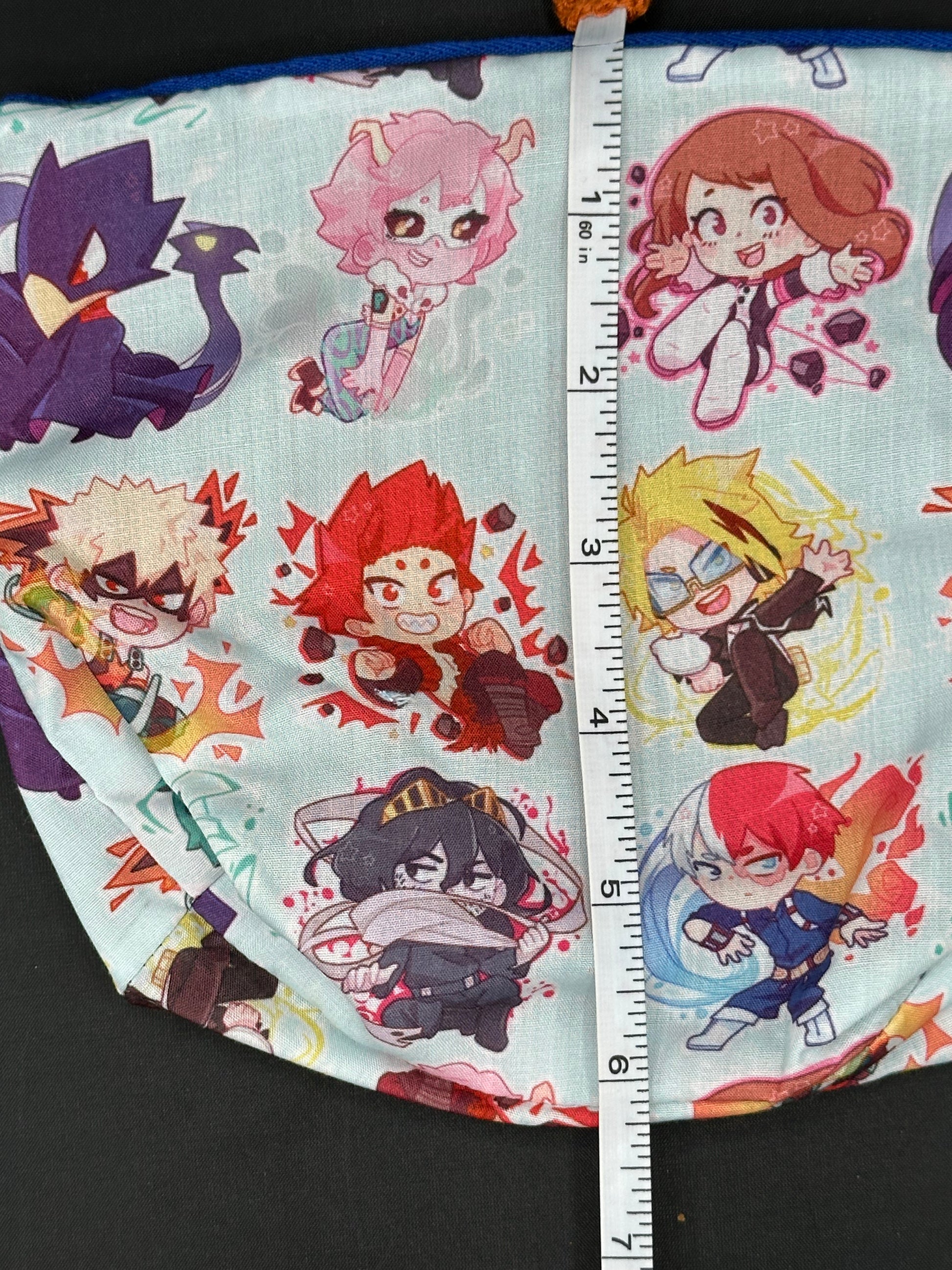 The finished product is about 7 inches by 7 inches. The bottom corners have been made to form a box look to give it a bigger bottom. These can be used to carry various items (ex: pencils, pens, cosmetics, toys)